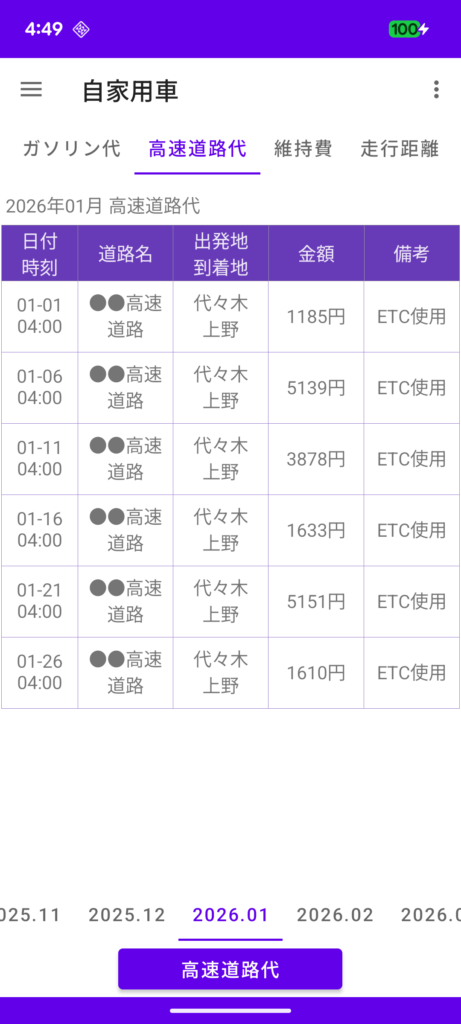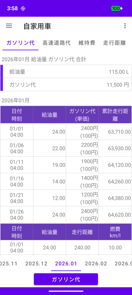 ガソリン代を記録します。