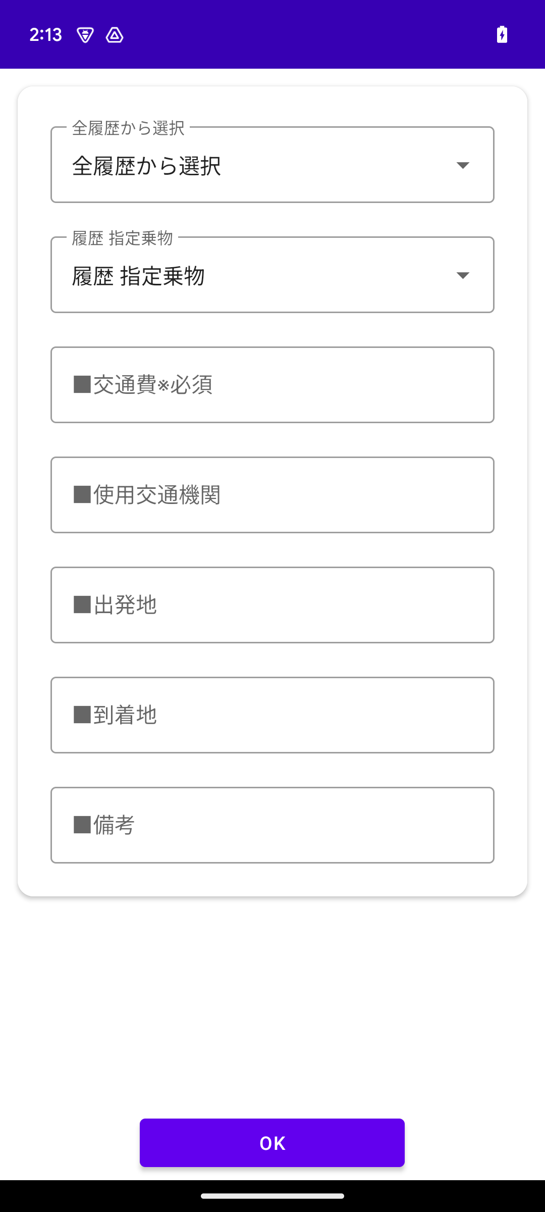 交通費 記録アプリ トップ画面