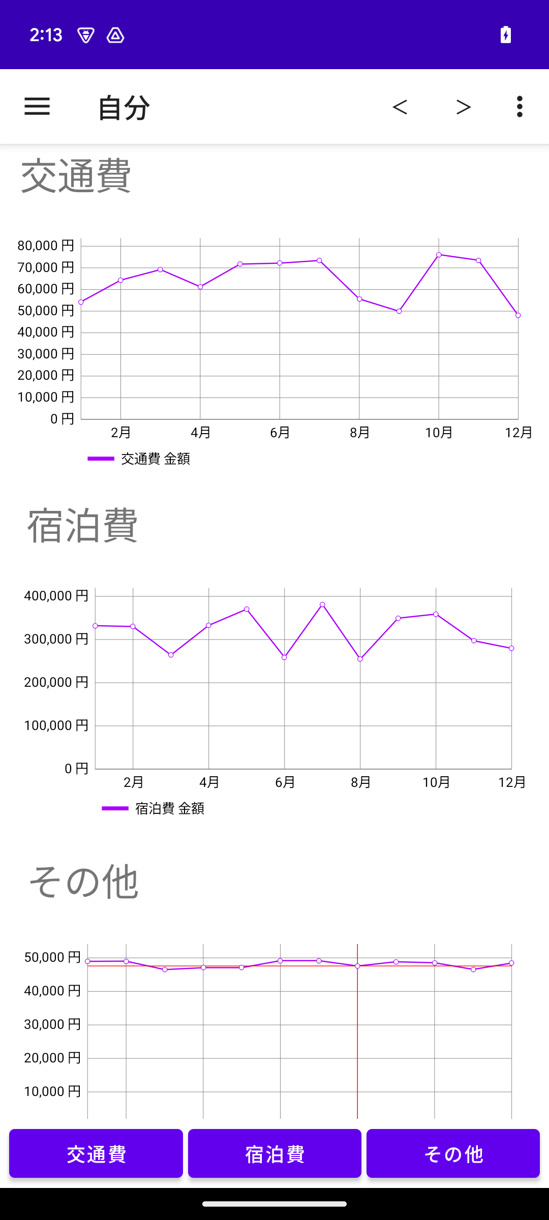 交通費の線グラフ 宿泊費の線グラフ その他の線グラフ